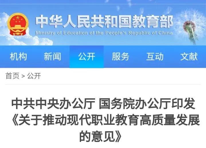 2021年10月,中共中央办公厅、国务院办公厅印发了《关于推动现代职业教育高质量发展的意见》,并发出通知,要求各地区各部门结合实际认真贯彻落实。这是继2020年10月印发《深化新时代教育评价改革总体方案》后,教育领域的又一份纲领性文件。