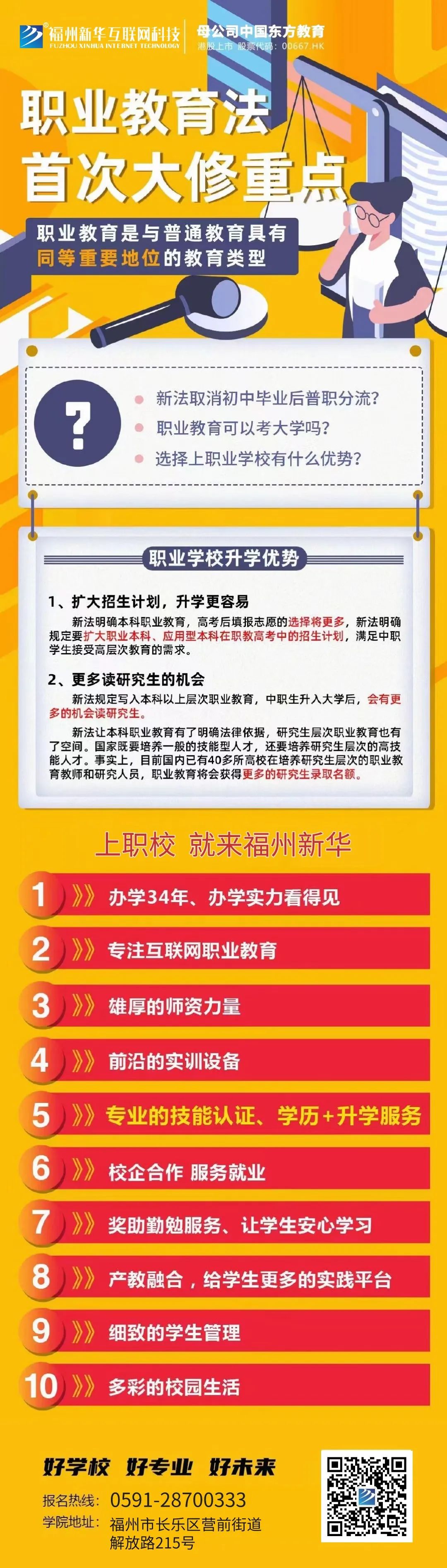 职业教育再上热搜,4月20日,十三届全国人大常委会第三十四次会议表决通过了新修订的职业教育法,将于2022年5月1日起施行。这是该法自1996年颁布施行以来的首次大修。对于职业教育院校的学生来说,这样的消息无疑是增加了学技术的自信,对于观望的学生和家长来说,此消息是他们对职业教育的新改观起点。