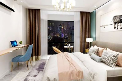 作品介绍:卧室设计主打轻奢风格,家具使用大量金属,整体布局简洁大方。既有动感也略带有一丝现代感,加上灯光的点缀,让整个空间变的更加灵动。